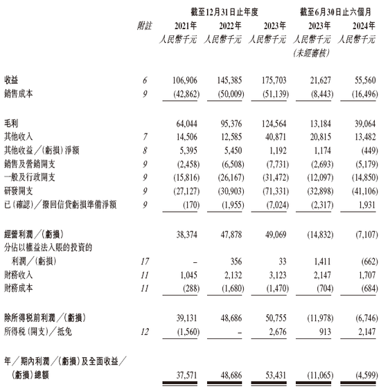 招股书显示,在过去的2021年、2022年、2023年和2024年前六个月,赛目科技的营业收入分别为人民币1.07亿、1.45亿、1.76亿和0.56亿元,相应的净利润分别为人民币3,757.1万、4,868.6万、5343.1万和459.9万元。
